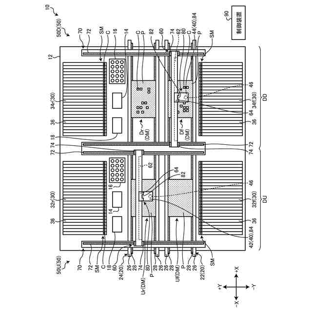 このような、実装ヘッドは、低い位置にある場合より高い位置にある場合の方が、基板との距離が遠くなりノズルの上下移動距離が長くなるため、所要時間が長くなる。そこで、実装ヘッドは、レーン上の基板にまだ部品が実装されていない状況では最も低い位置を移動し、搭載されていく毎に部品に干渉しないように高い位置を移動するように制御される。