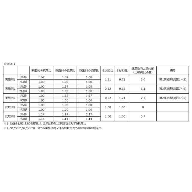 特許文献1及び2の波打車輪によれば、ブレーキによって板部に発生する熱応力を低減することができる。しかしながら、特許文献1及び2は、車輪から生じる振動騒音には着目していない。鉄道車両から生じる騒音のうち、レール-車輪間の接触により生じる振動騒音は転動音と称される。沿線環境保護の観点から、転動音を低減し、車輪の静粛性を向上されることが望まれている。