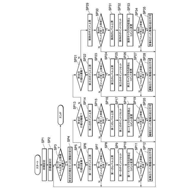 また、本発明の第二態様では、前記コンピュータを、前記判定部が、前記ポイント値が所定値に到達したと判定すると、レベル値を蓄積するレベル管理部、前記レベル値が蓄積されていない状態において初期状態のオブジェクトを設定し、前記レベル管理部が当該レベル値を蓄積すると、当該オブジェクトの状態を変更するオブジェクト設定部、として更に機能させ、前記表示制御部は、前記オブジェクト設定部が設定又は変更した前記オブジェクトを前記画面に表示する制御を行う。