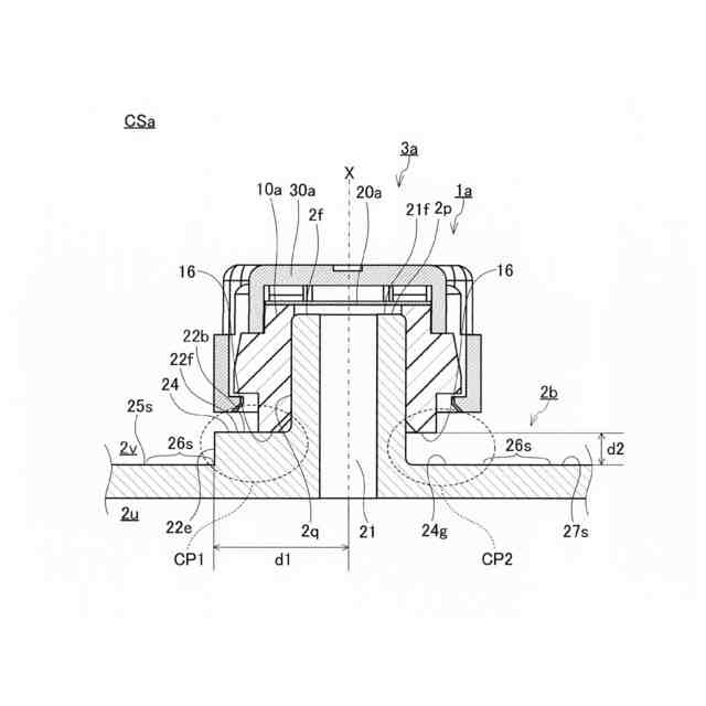 前記断面において、前記突起は、前記台座部の上面よりも上方、かつ前記第2部材の下端よりも上方において、上方を向く上面を有する、