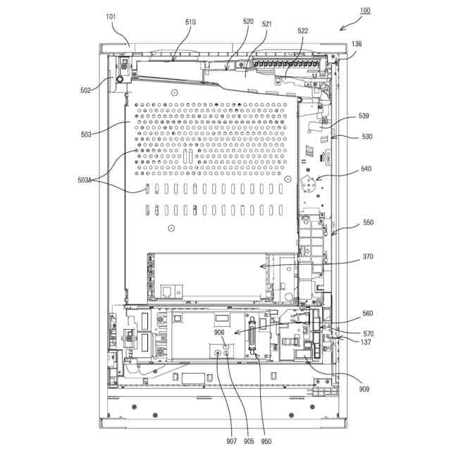 まず、図1から図9を主に参照して、パチンコ機100の構造部分の構成について説明する。図1~図4は、パチンコ機100の各種状態を示す斜視図であり、図1はパチンコ機100の閉鎖状態を示し、図2は外枠101に対して前ブロック102及び中間ブロック103が一体的に開放されている状態を示し、図3は中間ブロック103に対して前ブロック102が開放されている状態を示し、図4は中間ブロック103に対して後ブロック104が開放されている状態を示している。また、図5は、パチンコ機100の正面図であり、図6は、図5の状態からパチンコ機100の前ブロック102を取り外した状態を示している。なお、各図において各種の配線は省略されており、また、図3及び図6において遊技盤400の構成の一部は省略されている。
