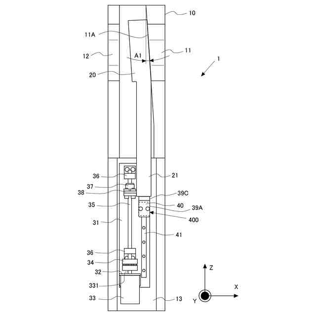 前記ゲート板を前記第一方向及び前記第二方向に案内する直動案内と、