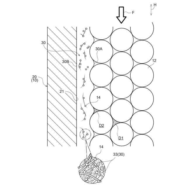 請求項1に記載の吸着装置では、特定物質を含む気体がケーシング内を通過すると、第1吸着体の粒子間を気体が通る際に、第1吸着体が気体に含まれる特定物質を吸着する。ここで、ケーシングの内側面には、変形部材が配置されている。この変形部材は、第1吸着体に面した表面の変形によりケーシングの内側面と第1吸着体との間の空隙率を低減させる。このため、ケーシングの中央側と外周側との圧力損失の差分を小さくすることができ、ケーシング内のガス流れが不均一になることが抑制される。さらに、変形部材は、少なくとも第1吸着体に面した表面に特定物質を吸着する第2吸着体が固定されている。従って、ケーシングの内側面と第1吸着体との間を気体が通過すると、第2吸着体が気体に含まれる特定物質を吸着するため、内側面の近傍の吸着性能が向上する。このようにして、請求項1に記載の吸着装置では、ケーシングの壁面と吸着体との間の隙間を抑制し、ケーシング内のガス流れが不均一になることを抑制するとともに、壁面付近の吸着性能を向上させることができる。