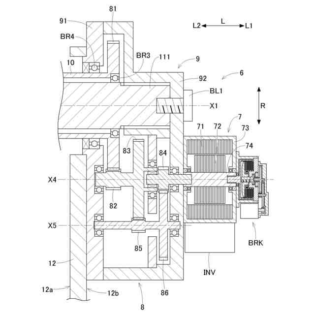前記第1軸心に沿う方向を軸方向とし、前記軸方向の一方側を軸方向第1側とし、前記軸方向の他方側を軸方向第2側とし、前記第1軸心に直交する方向を径方向として、