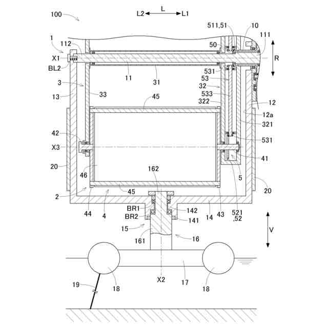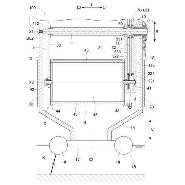 しかしながら、上記の構成では、支持軸(3a)が水平方向に沿って配置されているため、当該支持軸(3a)を鉛直方向に支持するための構造が大型化し易い点で不利であった。