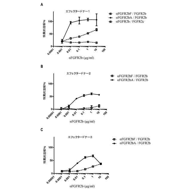 て、ADCC活性が、標的細胞としてFGFR2IIIbを発現するBa/F3細胞、及