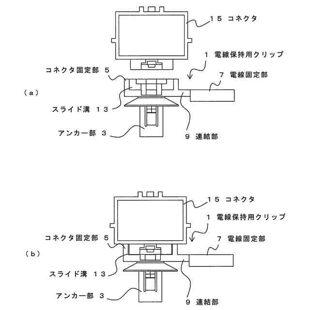 前述した目的を達するために第1の発明は、電線とコネクタを保持することが可能な電線保持用クリップであって、固定対象に固定されるアンカー部と、コネクタを固定可能なコネクタ固定部と、電線を固定可能な電線固定部と、を具備し、前記アンカー部は、前記コネクタ固定部又は前記電線固定部の下部に配置され、前記電線固定部と前記コネクタ固定部とが連結部を介して一体化されることを特徴とする電線保持用クリップである。