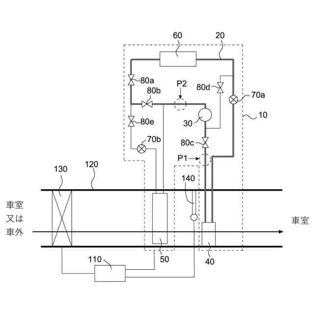 ヒートポンプサイクルを利用して冷房及び暖房を行うことが可能な空調システムが知られている。この空調システムは、省電力などの利点を有することから、電気自動車(BEV:Battery Electric Vehicle)などの車両においても利用されている。ヒートポンプサイクルは、コンプレッサ(圧縮機)、コンデンサ(凝縮器)、エバポレータ(蒸発器)、膨張弁などの部品が冷媒配管によって環状に接続された構成を有しており、冷媒の気化熱や凝縮熱を利用することにより冷房及び暖房を行うことができる。