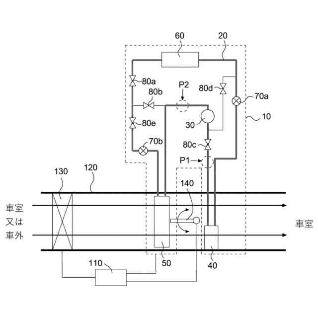 [3] 前記ヒートポンプサイクルは、空調ダクト内を流通する空気と前記冷媒との熱交換を行うコンデンサを更に有し、