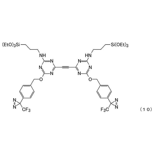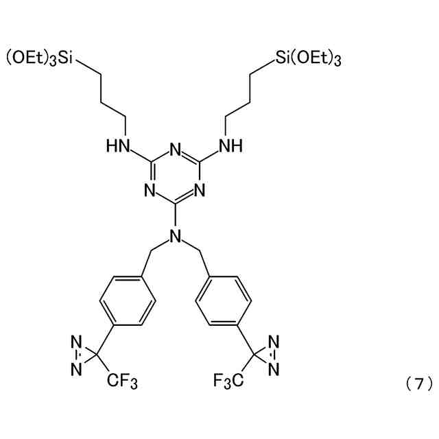 しかし、特許文献1の技術では、アジド基を備える分子に短波長の紫外光を照射するため、基材が劣化し、密着性が低下するという問題があった。基材の劣化を抑制し、かつ、密着性を改善できる技術として、特許文献2には、一分子内に、所定の式で表されるシランカップリング部位と、ジアジリン基と、を備える、反応性付与化合物が開示されている。