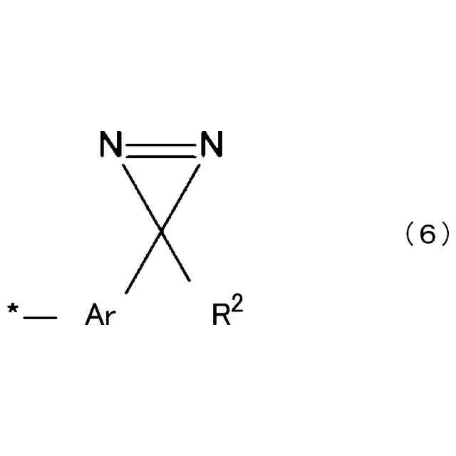 は、メチル基、エチル基、トリフルオロメチル基、またはペンタフルオロエチル基であり、上記式(6)中の*は、隣接する炭素原子を表し、Arはアリーレン基、2価の複素環基またはメチレン基であり、R