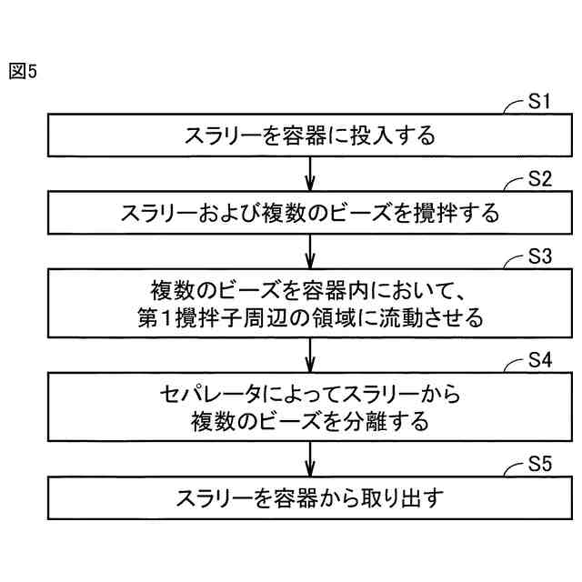 電子部品の製造装置として扱うことが可能なビーズミルの構成を開示した先行技術文献として、実用新案登録第3217671号公報(特許文献1)がある。特許文献1に記載されたビーズミルは、円筒容器と、攪拌子とを備える。ビーズミルは、円筒容器内において攪拌子が回転することによって、硬質粒子(ビーズ)を攪拌する。これにより、固体粒子の懸濁液(スラリー)中の粒子が粉砕される。その後、ビーズがスラリーから分離される。
