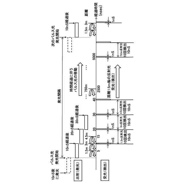 所定空間においてパルス光を所定間隔で出射する出射手段と、