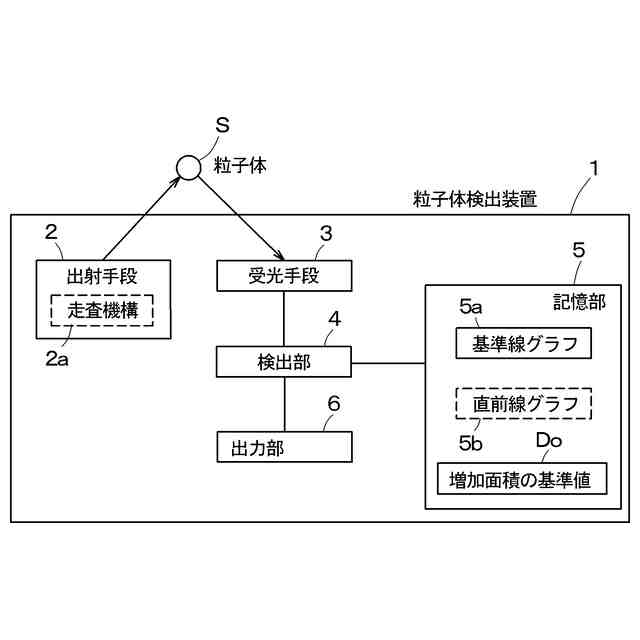 【解決手段】所定空間においてパルス光を出射する出射手段2と、所定空間に漂う粒子体Sで反射したパルス光を受光する受光手段3と、粒子体Sとして注目粒子体がパルス光の出射方向で局所的な位置に高密度で存在することを検出する検出部4と、検出部4の出力を記憶する記憶部5とを有する。検出部4は、パルス光の出射から受光手段3での受光までの時間差に基づき、粒子体Sまでの距離を換算して、距離に応じた受光手段3による反射光強度に基づく計数値を線グラフ化し、注目粒子体が存在しない場合の記憶部5で記憶している基準線グラフ5aである第1の線グラフと逐次に比較し、第1の線グラフに対して局所的な位置で凸状の増加面積が基準値を超える場合に、注目粒子体が局所的な位置に高密度で存在することを検出する。
