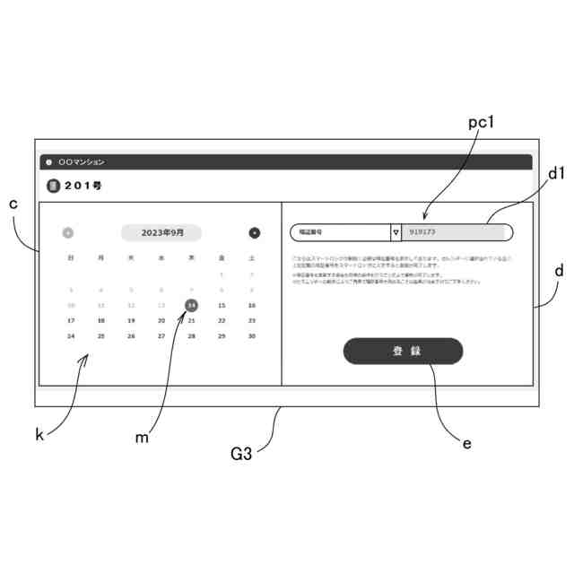前記データベース部は、建物の各居室の電子錠装置と同期し、建物の居室ごとに異なるカレンダー対応の暗号番号表が登録されており、当該暗号番号表は、カレンダーの日付に対応してカレンダーの日付ごとに異なる暗証番号が割り当てられており、