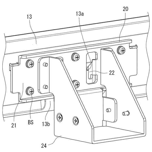支持部が下向きに取り付けられた背面係合部近傍を拡大して示す拡大斜視図である。