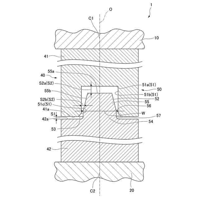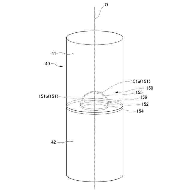 前記先細り部は、前記第1方向の軸線に沿って延び、前記軸線方向で前記篏合溝の底面側に向かうにしたがって、縮径するテーパ状に形成されている、
