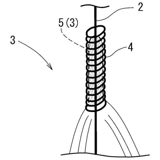 【解決手段】地毛に装着する人毛や化学繊維で作られた毛髪の束の集合体であるヘアエクステンション1であって、取り付けベース線材2と、取付けベース線材2に所定の間隔を置いて括り付けられた複数の毛髪の束3と、取付けベース線材2に所定の間隔を置いて括り付けられた毛髪の束3の取付けベース線材2側に隙間がないように巻き付けた巻き付け弾性線材4を備えることを特徴としている。