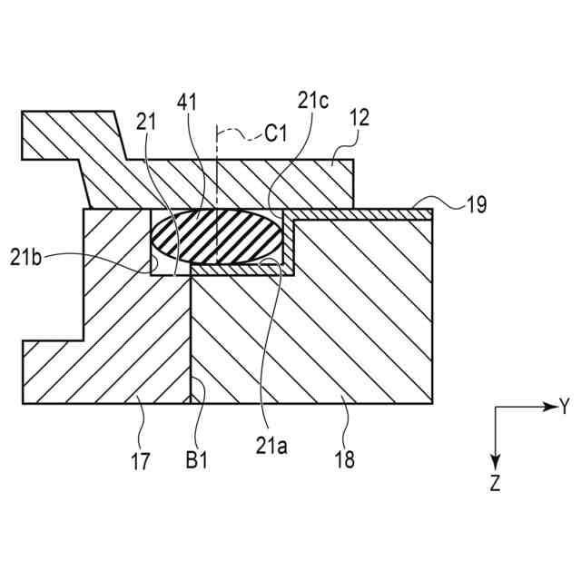 前記第1ケース部と前記第2ケース部との境界には、互いに連続して跨って配置される溝が形成され、