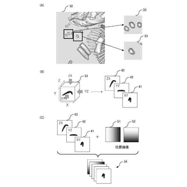 前記3次元画像から前記物体の部分及び前記部分の近傍を含むように切り出された部分画像に基づいて、複数の方向から前記部分画像が2次元平面に投影された複数の2次元画像を特定の画像サイズにおいて生成すること、