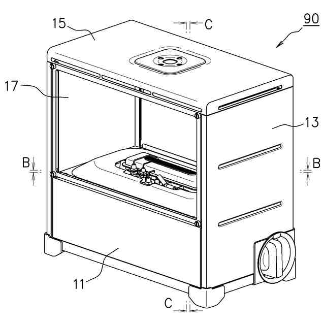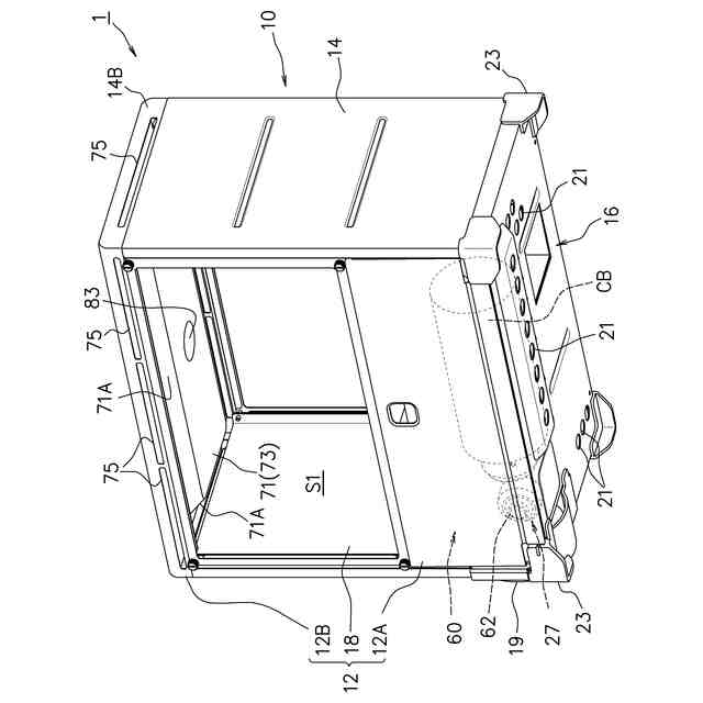 前記バーナは、前記ガスを前記内部空間に放出する炎口部を有するバーナヘッドと、前記バーナヘッド側に前記ガスを吹き出す吹出口を有するバーナ本体とを備え、