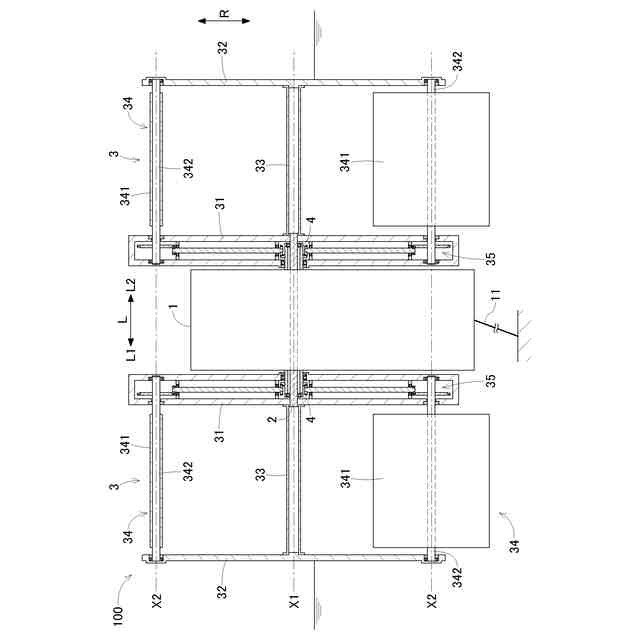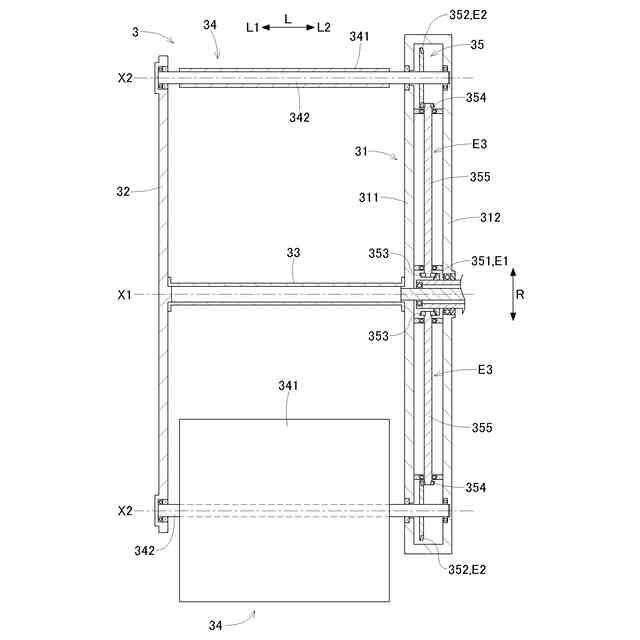 水平方向に沿う第1軸心上に配置された連結軸と、