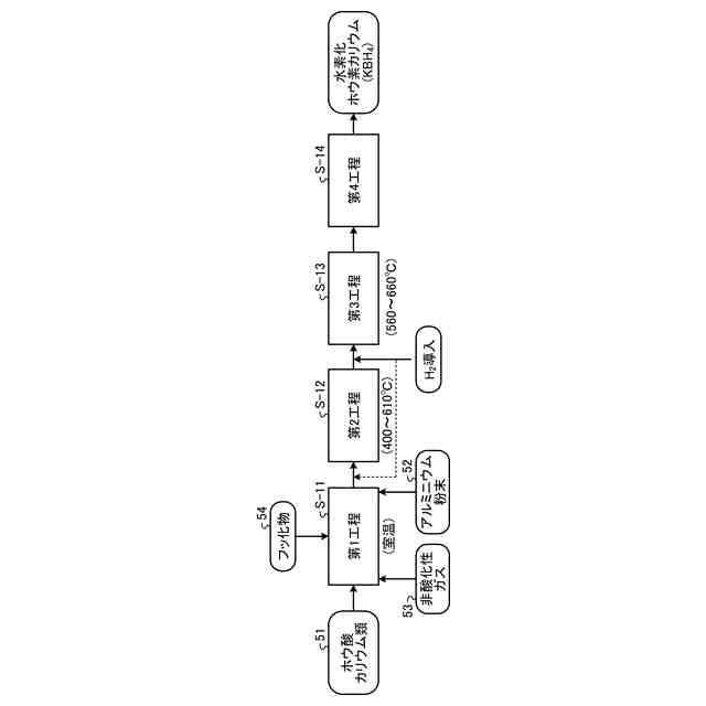 【解決手段】水素化ホウ素カリウムの製造方法は、アルカリ金属化合物と、フッ化物と、アルミニウム化合物及びアルミニウムより選択された少なくとも1種以上の材料と、を含む固体原材料を混合し、560℃より大きい温度で加熱処理を行う反応工程を有する。