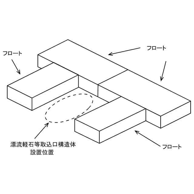 漂流軽石等取込口構造体を支持するための支持部を有するフロート装置と、