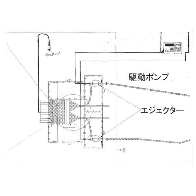 エジェクターを駆動するための駆動流体ポンプと、からなる吸引装置と、からなる漂流軽石等除去装置。