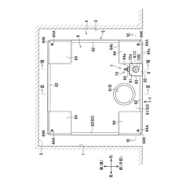 従来から、洗面所や脱衣所等の床面上に防水パンが設置され、その防水パン上に洗濯機が設置されている。
