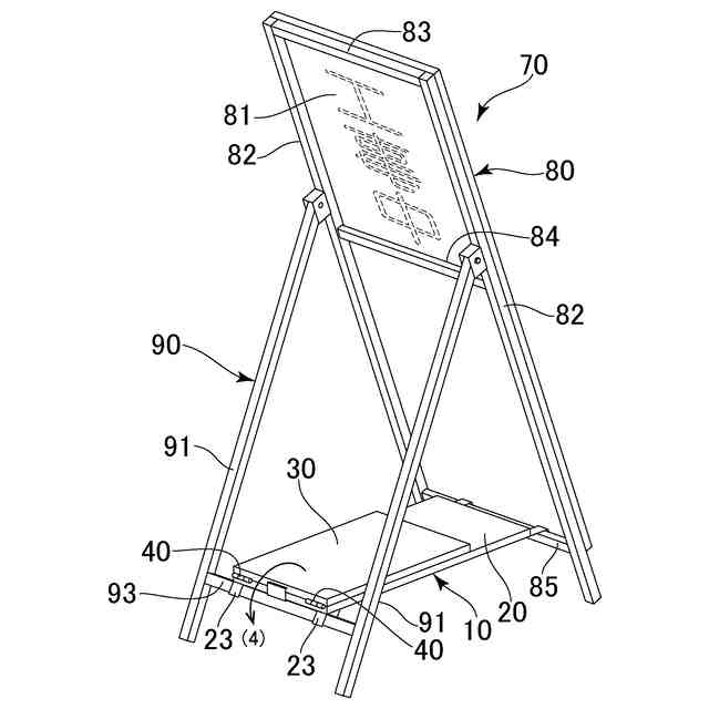 そのため、立て看板に錘(ウエイト)を付けて安全性を図るようにしている(特許文献1~3など)。