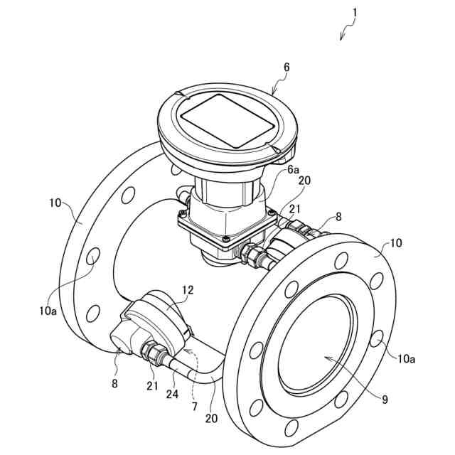 (1)上述した目的を達成するため、本開示の一形態によれば、超音波流量計が提供される。この超音波流量計は、流体が流れる流路を有する測定管と、超音波センサーを収容するセンサー部であって、前記流路の上流側と下流側に位置し、かつ、超音波信号の送受信が可能に前記測定管の外壁に設けられる少なくとも1対のセンサー部と、前記測定管の外側に設けられ、前記超音波センサー間の伝播時間に基づいて前記流体の流量を演算する演算処理部と、前記測定管の外側に設けられ、前記超音波センサーと前記演算処理部とを電気的に接続する接続線を内部に挿通する配管と、前記配管が前記センサー部に接続することにより、前記センサー部と前記測定管との取付部位を覆った状態から取り外し不能に前記測定管に固定されているカバー部材と、を備えていることを特徴とする。