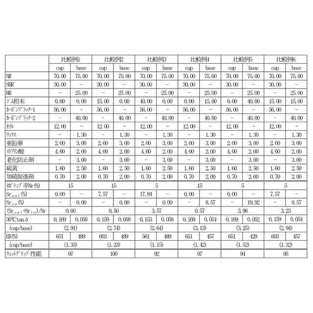 (%)、ベーストレッドにおいて加硫ゴム粉末が占める面積比率をSr