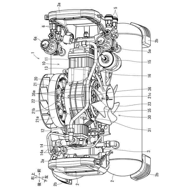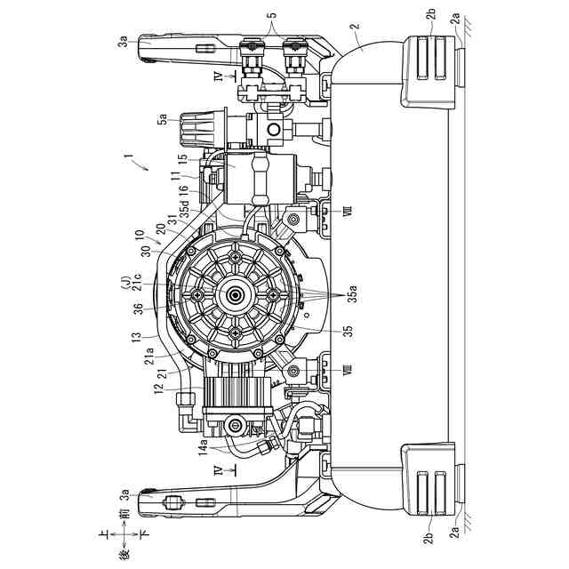 したがって内フィルタと外フィルタを設けることで、クランクケース内への粉塵の進入を抑制できかつクランクケース内からの音漏れを抑制できる。さらにタンクから清掃用配管と清掃用吸気口を介して内フィルタと外フィルタの間の領域に圧縮エアを導入する。これにより外フィルタの内面側から外面側へ圧縮エアを流して堆積した粉塵を外方へ吹き飛ばすことができる。しかもエアコンプレッサが電源に接続されていない場合でも、例えば清掃用配管にバルブやコック等を連結することで、機械的動作または手動によって圧縮エアをタンクから清掃用吸気口へ導入できる。かくして外フィルタの外面または内部あるいは内フィルタの外面に堆積した粉塵を効率良く除去できる。