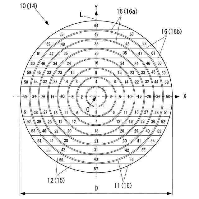 特許文献1は、複数(例えば32個)の素子を直線状に並べたリニアアレイ探触子を用いる。この場合、検査対象物であるボルトの円形の検査面に対し、中心を通る中心線上のみに複数の素子が配置され、中心線から離れた部分には素子が配置されない。その結果、素子全体の面積が円形の検査面全体と比較して小さく、探触子から出力される超音波強度は素子全体の面積に比例するため、検査位置に照射される超音波強度が微弱となる。