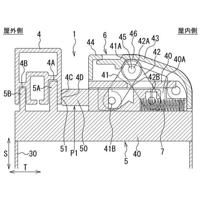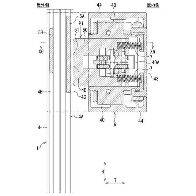 図7のX4-X4線で切断した第1実施形態の建具を示す横断面図である。