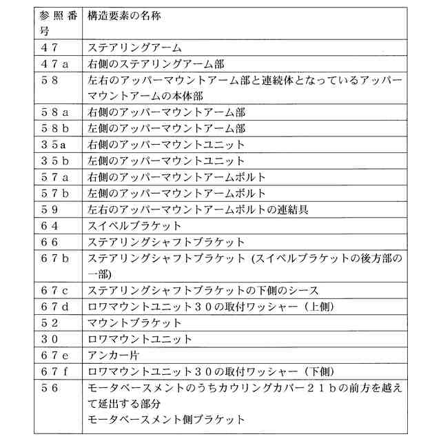 特許文献1(同文献では、ミドルセクションをミドルケースと呼称し、また、ミドルケースの中に収容される機構ユニットをミドルユニットと呼称している)の図1には、「 モータルーム13内のアッパーマウント10とロアーマウント11」が開示されている。同図を見る限りにおいて、同文献のアッパーマウント10はガソリンエンジン式船外機における一般的なマウントアームを2本有してそれが船外機本体側に固定されていると認められる。一方、ロアーマウント11については、その具体的な構造は同文献の明細書中にも図面にも説明がないので、俄かには認識できないが、同図を見る限りにおいて、lower mountは単一であるように見受けられるが、それは、「モータ取り付けベース29A」と一体化されて連続体を形成しているとは見えない。