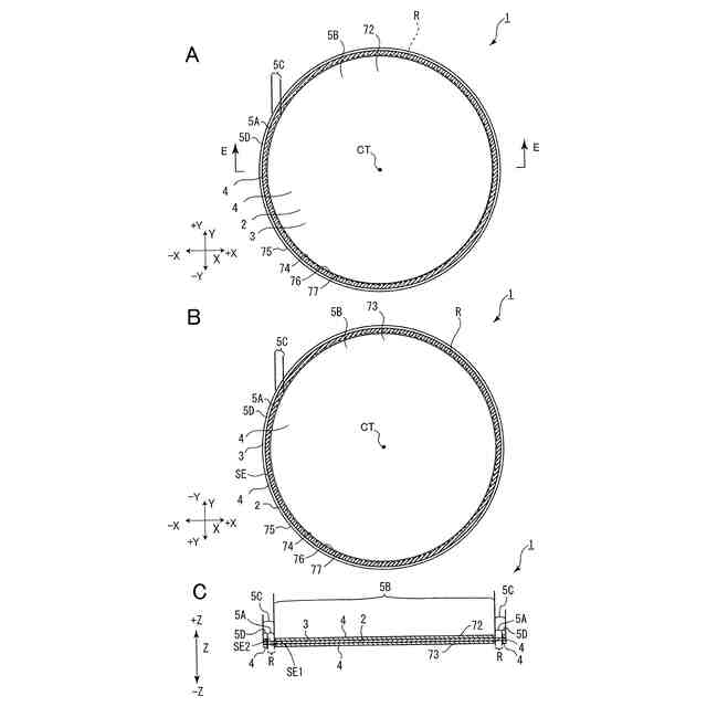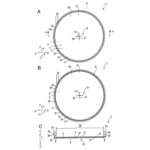 図3Aは、第1の実施形態の変形例3及び4にかかる蓋体の一実施例を模式的に示す平面図である。図3Bは、第1の実施形態の変形例3及び4にかかる蓋体の一実施例を模式的に示す底面図である。図3Cは、図3AのB-B線縦断面の状態を模式的に示す断面図である。