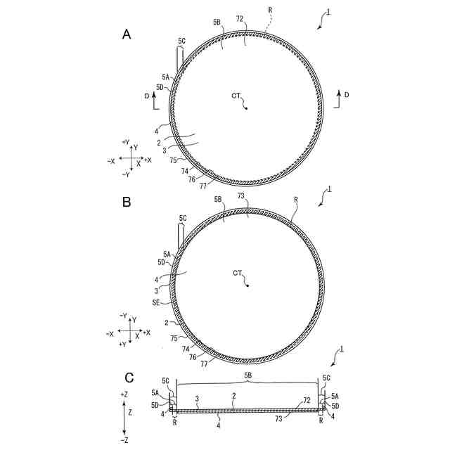 図5Aは、第1の実施形態の変形例5にかかる蓋体の一実施例を模式的に示す平面図である。図5Bは、第1の実施形態の変形例5にかかる蓋体の一実施例を模式的に示す底面図である。図5Cは、図5AのD-D線縦断面の状態を模式的に示す断面図である。