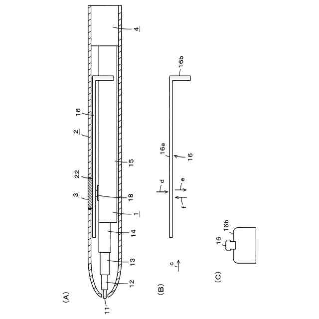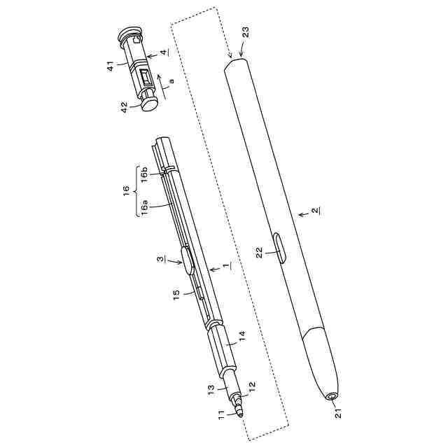 【解決手段】 押下用操作子3の挿通部32には、電子ペン本体部1の押し子部16aが挿通されることにより、押下用操作子3が、外側筐体2の操作子用開口部22に嵌め込まれた状態で、電子ペン本体部1の押し子部16aに取り付けられる。外側筐体2の操作子用開口部22は、電子ペン本体部1が装填されて定位置に固定された場合に、電子ペン本体部1の釦スイッチ18に対応する側面上の位置に設けられている。このため、押下用操作子3を通じた釦スイッチ18の確実な押下操作が可能にされ、電子ペンにおけるサイドスイッチが実現される。