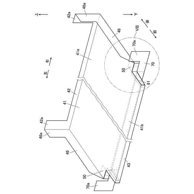 前記第1延出部(42a)に重ねられて前記第1延出部(42a)に接合され、前記傾斜プレート(41)の後縁に沿って前記傾斜プレート(41)の上面に突き当てられるリアプレート(81)と、
