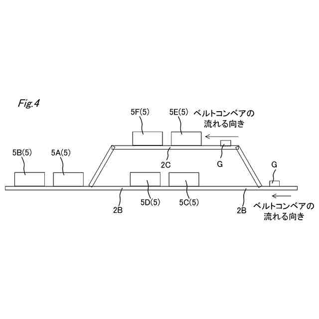 図2から図4は、分別装置5の組み合わせの一例を示す図である。分別装置5は、複数台を組み合わせて使用することができ、図2から図4に示すように、搬送経路上に組み合わせて載置することができる。