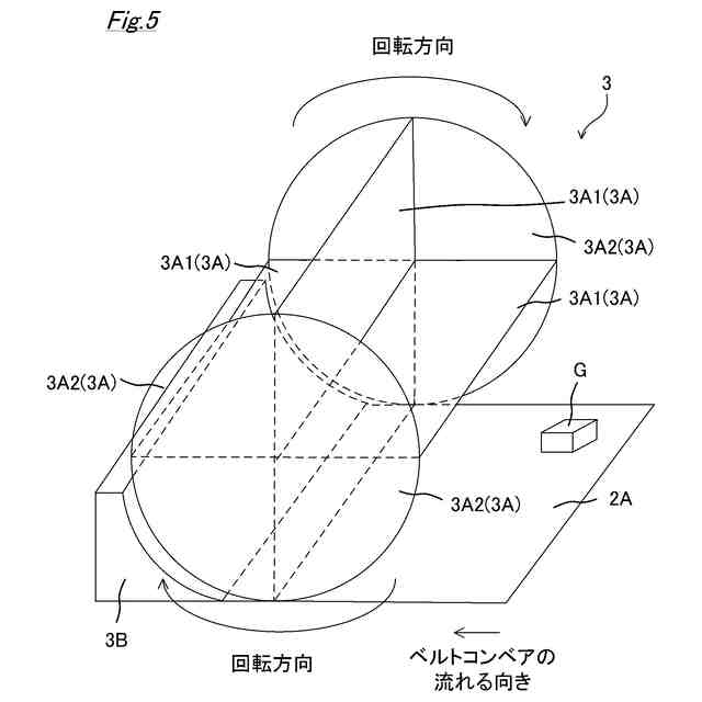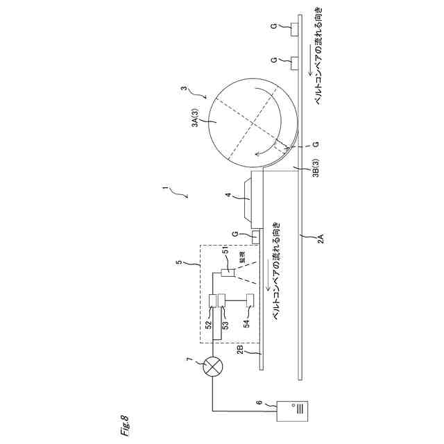 また、図3では、搬送経路2B上にさらに搬送経路2Cを配置し、搬送経路2B上に2つの分別装置5C,5Dが直列に設置され、搬送経路2C上に2つの分別装置5E,5Fが直列に設置された構成となっている。図3に示す例では、各搬送経路2B,2C上に設置された上流側の分別装置5C,5Eで分別できなかったゴミGを下流側の分別装置5D,5Fが分別する構成となっている。