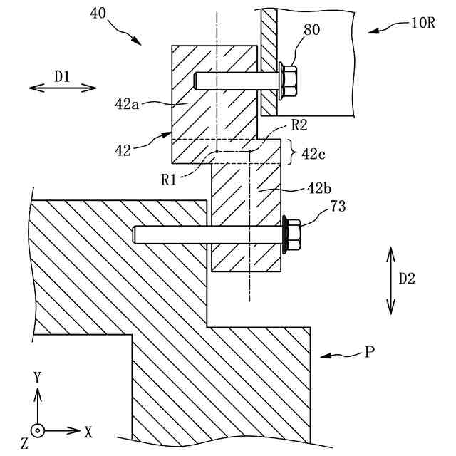 前記第2ボルトは、その軸部が前記前後方向に平行となるように、前記ブラケットに取り付けられ、
