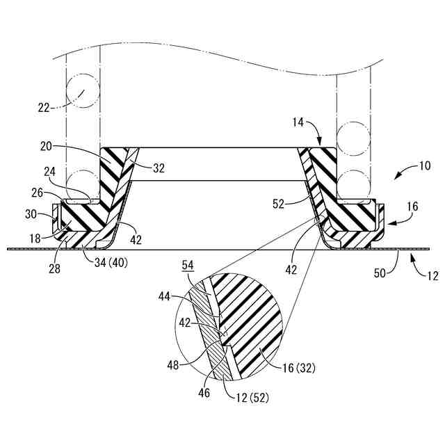 従来から、車両のサスペンション機構において、コイルスプリングとショックアブソーバに設けられたスプリング支持部(ショックアブソーバにおけるコイルスプリングの支持部分)との直接的な当接による打音等を防止する目的で、コイルスプリングとスプリング支持部との間に介装されるシートラバーが知られている。シートラバーは、例えば特許第6615857号公報(特許文献1)に示されているように、環状とされており、ショックアブソーバから外周へ突出するように設けられるスプリング支持部のフランジ状部に重ね合わされて、コイルスプリングの端部とスプリング支持部との間に介装される。