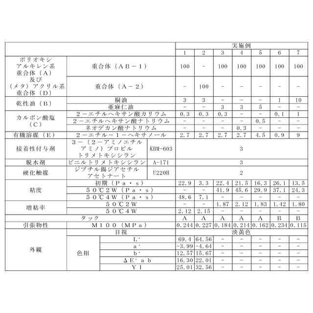 (1)ポリオキシアルキレン系重合体(A)と、酸素硬化性物質(B)と、カルボン酸塩(C)とを含み、(メタ)アクリル系重合体(D)を含んでいてもよく、