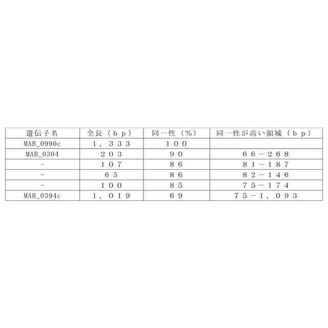 本発明は、従来のターゲットとされてきた遺伝子配列とは全く異なる新規の遺伝子配列をターゲットとして、マイコバクテリウム属抗酸菌を検出(特に鑑別判定)できる有用な方法等を開発すべくなされたものである。