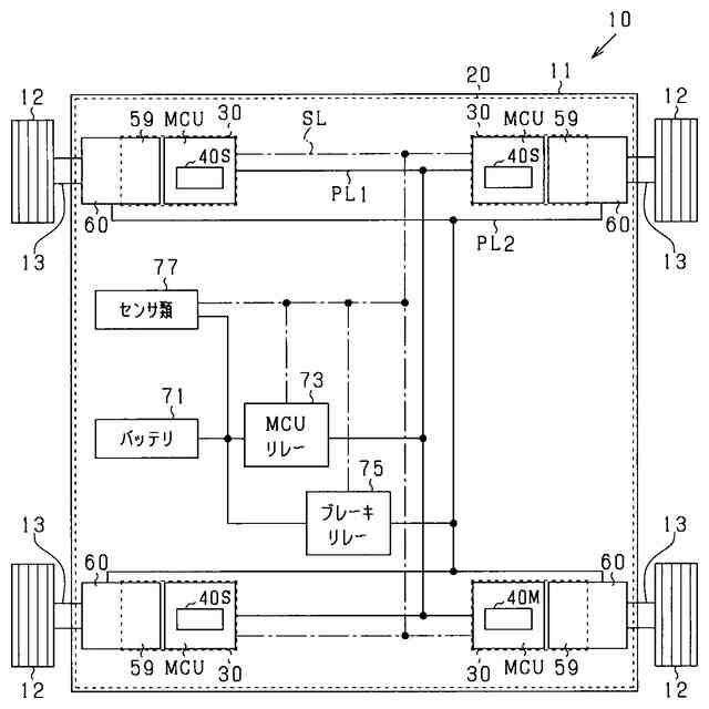 前記駆動輪を回転させる動力を発生するモータ(31)と、