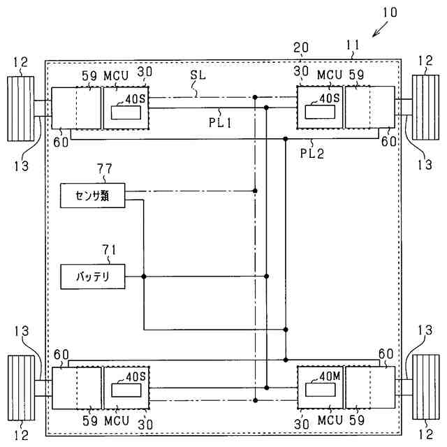 少なくとも1つの前記駆動装置の前記コントローラである主コントローラ(40M)は、前記複数の駆動装置を制御する機能の少なくとも一部を有し、