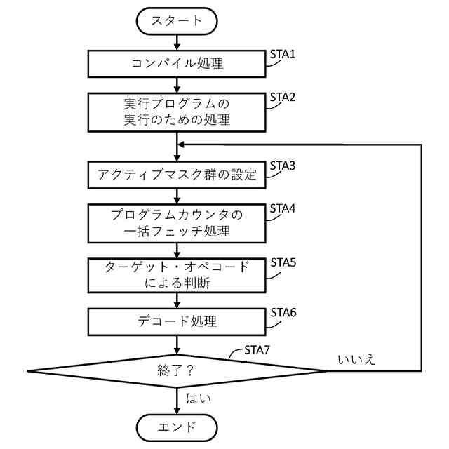前記各アクティブマスクは、対応するプログラムカウンタがアクティブか否かを示すデータを保持し、